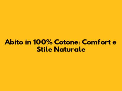 Abito In 100% Cotone: Comfort E Stile Naturale