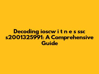 Decoding Ioscw I T N E S Ssc S2001325991: A Comprehensive Guide