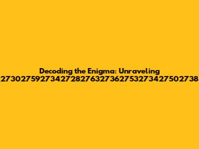 Decoding The Enigma: Unraveling 2730275927342728276327362753273427502738