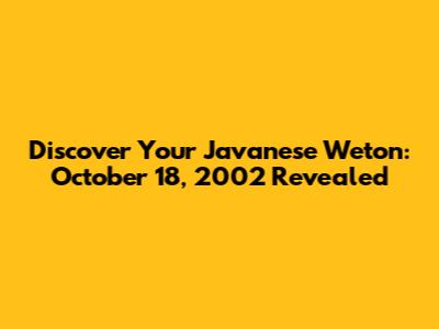 Discover Your Javanese Weton: October 18, 2002 Revealed