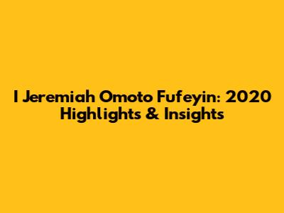 I Jeremiah Omoto Fufeyin: 2020 Highlights & Insights