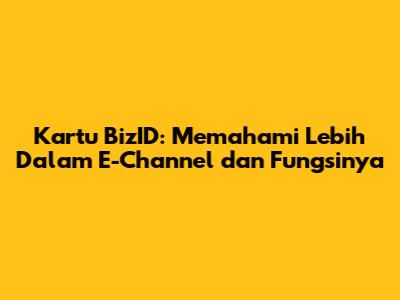 Guys, pernahkah kalian mendengar tentang Kartu BizID? Atau mungkin kalian sering melihat istilah "e-channel" muncul dalam konteks perbankan dan transaksi keuangan? Nah, artikel ini akan membahas tuntas tentang Kartu BizID, apa itu e-channel, serta bagaimana keduanya saling berkaitan. Kita akan kupas tuntas mulai dari pengertian dasar, fungsi, cara kerja, hingga manfaat yang bisa kalian dapatkan. Jadi, simak terus ya!