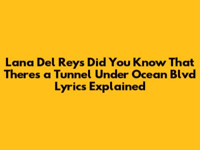Hey guys! Let's dive deep into Lana Del Rey's mesmerizing track, "Did You Know That There's a Tunnel Under Ocean Blvd." This song, the title track from her ninth studio album, is a lyrical masterpiece that's got everyone talking. We're going to break down the lyrics, explore the possible meanings, and try to understand what Lana is really trying to tell us. So, buckle up and let's get started!