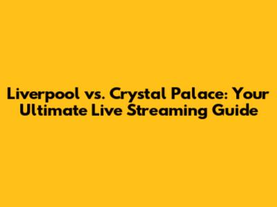 Liverpool Vs. Crystal Palace: Live Stream Guide
