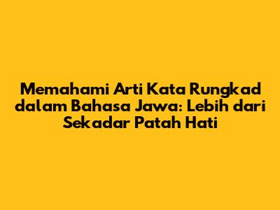Rungkad adalah kata yang sedang naik daun, guys! Kalian mungkin sering mendengarnya di lagu-lagu dangdut koplo atau obrolan sehari-hari. Tapi, apa sih sebenarnya arti kata rungkad dalam bahasa Jawa? Apakah sekadar menggambarkan patah hati seperti yang sering diasosiasikan? Mari kita bedah tuntas makna rungkad yang sesungguhnya, mulai dari akar katanya hingga penggunaannya dalam konteks modern.