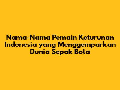 Guys, sepak bola Indonesia memang punya daya tarik tersendiri, ya kan? Nah, salah satu yang bikin makin seru adalah kehadiran pemain-pemain keturunan Indonesia yang unjuk gigi di kancah sepak bola dunia. Mereka ini bukan cuma membawa nama Indonesia, tapi juga menunjukkan bahwa darah Indonesia bisa bersaing di level tertinggi. Penasaran siapa saja mereka? Yuk, kita bedah satu per satu!