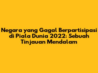 Piala Dunia FIFA 2022 menjadi sorotan utama bagi para penggemar sepak bola di seluruh dunia. Namun, tidak semua negara berhasil mengamankan tempat di turnamen bergengsi ini. Banyak tim nasional yang harus mengucapkan selamat tinggal lebih awal, gagal memenuhi syarat kualifikasi yang ketat. Artikel ini akan membahas secara mendalam daftar negara yang absen di Piala Dunia 2022, menganalisis faktor-faktor yang menyebabkan kegagalan mereka, dan memberikan wawasan tentang bagaimana dinamika sepak bola global membentuk partisipasi di panggung dunia.