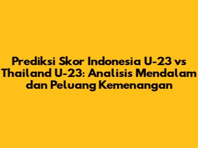 Prediksi skor dalam pertandingan antara Indonesia U-23 vs Thailand U-23 selalu sulit untuk ditebak. Namun, dengan mempertimbangkan kekuatan masing-masing tim, performa terkini, dan strategi yang mungkin diterapkan, kita bisa mencoba untuk memprediksi hasil akhir. Pertandingan ini diprediksi akan berjalan ketat dan sengit. Kedua tim akan berusaha untuk saling mengalahkan dan meraih kemenangan.