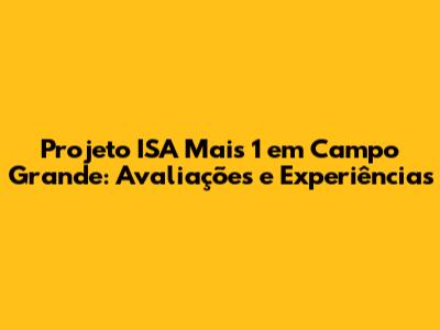 Projeto ISA Mais 1 Em Campo Grande: Avaliações E Experiências