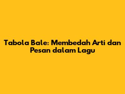 Tabola Bale: Memahami Makna Di Balik Liriknya