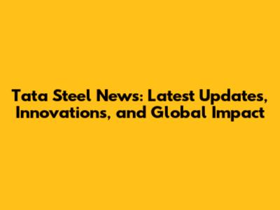 Tata Steel News: Latest Updates, Innovations, And Global Impact