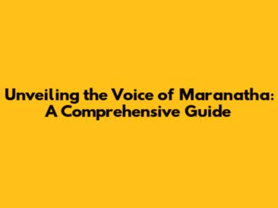 Unveiling The Voice Of Maranatha: A Comprehensive Guide